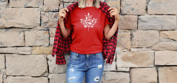 Closeup of Choose Canadian Maple Leaf Logo on Shirt